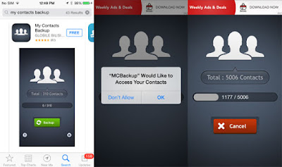 توجد طريقة أخرى أسهل وأسرع باستخدام تطبيق من متجر تطبيقات Apple، وتوجد تطبيقات عديدة تقوم بهذه المهمة لكننا سنختار واحداً منها ونطبّق عليه الشرح، وهو تطبيق "My Contacts Backup" والخطوات كالتالي: