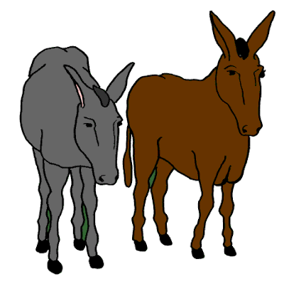 يُحكى أن فلاحا كان يمتلك حمارين، قرر في يوم من الأيام أن يُحمِّل على أحدهما ملحا والآخر صحونا وقدورا انطلق الحماران بحمولتهما ، وفي منتصف الطريق شعر الحمار حامل الملح بالتعب و الإرهاق حيث أن كمية الملح كانت أكثر وأثقل من القدور الفارغة، بينما كان حامل القدور سعيدا بحمولته حيث كانت أقل وأخف .