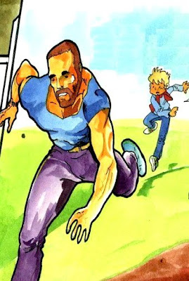 ركض حسان الشجاع بسرعة في اتجاه اللص، فرأي رجلاً مفتول العضلات يركض في الشارع ويلبس قميصاً أزرق فعرف أنه اللص الذي وصفته له العجوز، ولكن منظر اللص وعضلاته وقوته جعلت حسان يرتجف خوفاً منه، توقف حسان قليلاً يفكر هل يستمر بمتابعة اللص واذا اقترب منه فكيف سيستطيع أن يتغلب عليه ويمسك به وهو بهذه القوة، ولكنه وعد المرأة العجوز أن يعيد لها ما سرقه اللص، ووعد الحر دين عليه، وفجأة خطرت علي باله فكرة ذكية رائعة، فالذكاء يغلب القوة دائماً .