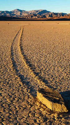 4- الحجارة الزاحفة بوادي الموت بالولايات المتحدة الأمريكية والتي لطالما حيرت العلماء بسبب زحف هذه الحجارة دون معرفة السبب وراء ذلك.