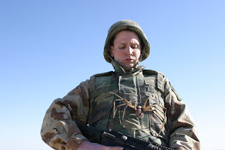 ويضيف لقد كانت تلك العناكب تحيط بنا من كل مكان وكنا نخاف من سمها ويقول بعض الجنود إنهم اعتادوا على رؤية هذا النوع الخطير من العناكب في ظل انعدام السكان العراقيين وذلك بعد فرار معظمهم إبان دخول القوات الأمريكية للعراق.