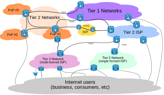 وهذه ليست خريطة رسمية للإنترنت، أو تعريف ثابت للأنواع المختلفة منه، ولكن في العموم تعتبر الشبكة رقم 1 الموجودة في الخريطة هي العمود الفقري للإنترنت، وهذه الشبكة بنيت قبل وجود البنية التحتية للتلفون في الولايات المتحدة وغيرها من الدول المتقدمة، وتعتبر الشبكة رقم 1 من الشبكات التي لديها اتفاقية تواصل (ند إلى ند) والتي تمكن جميع المناطق التابعة لها بالتواصل مع بعضهم بصورة مباشرة.